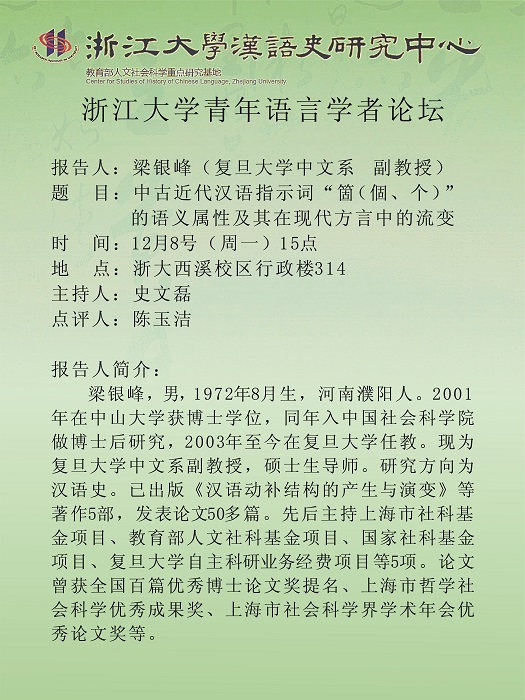 报告人:梁银峰(复旦大学中文系 副教授)