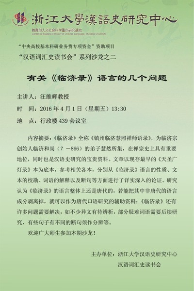 “汉语词汇史读书会”系列沙龙之二预告