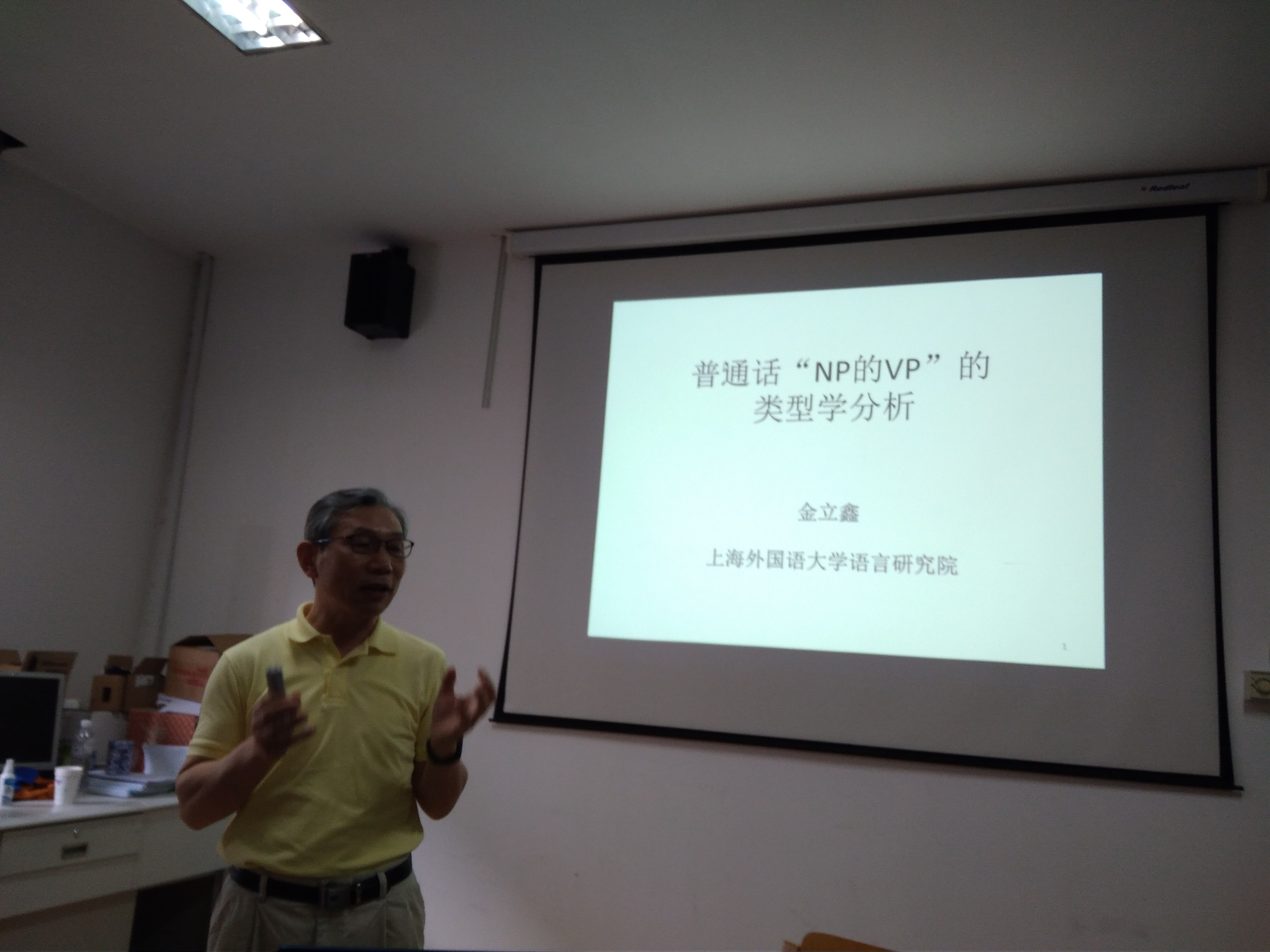 5月11日下午,“西溪语言学论坛”第一次活动在西溪校区行政楼314室举行,上海外国语大学金立鑫教授作学术报告,讲题为:普通话“NP的VP”的类型学分析。活动由罗天华副教授主持。