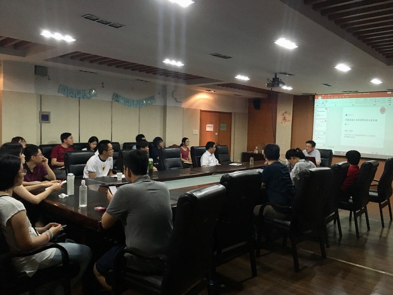 浙江大学中国语言文学系列讲座(2018年第6期)于6月14日晚上19:00–21:00,在我校西溪校区行政楼229室举行。本次讲座邀请到了著名语言学家北京大学中文系袁毓林教授,讲题是《汉语中心语名词与定语从句的选择关系研究》。讲座由池昌海老师主持,汪维辉老师、史文磊老师、陈玉洁老师、罗天华老师以及相关专业的同学们参加了本次讲座。