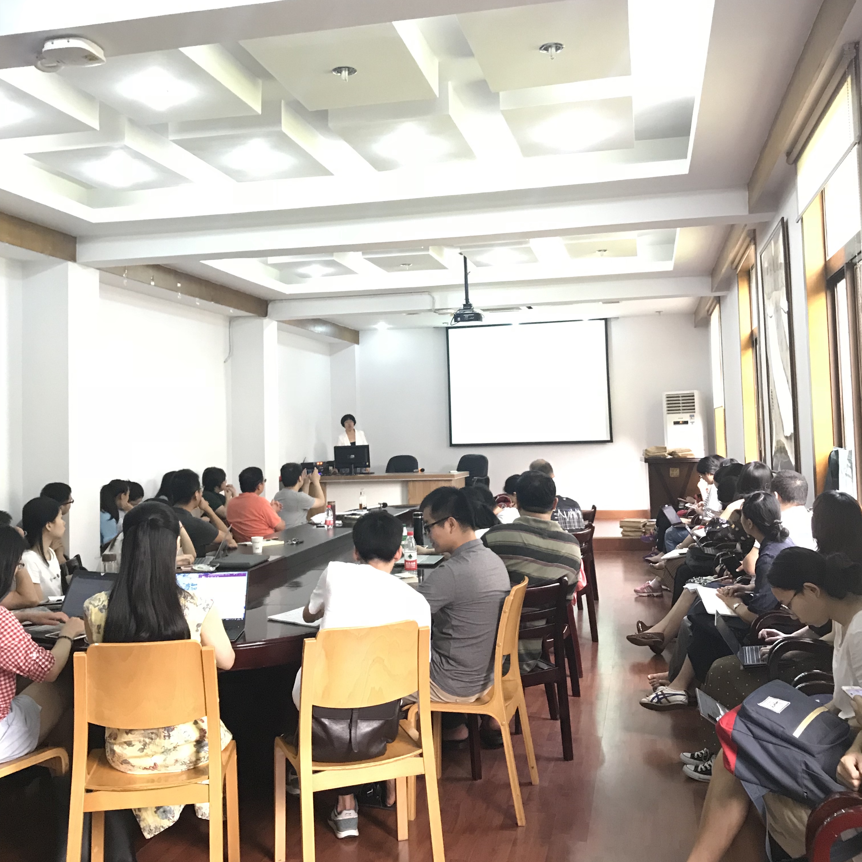 2018年6月29日上午9点-11点,北京大学中文系、教育部青年长江学者董秀芳教授在浙江大学西溪校区行政楼二楼会议室进行了题为《汉语词法的类型特征及研究中需要注意的问题》的讲座。汉语史中心方一新教授、汪维辉教授、陈玉洁副教授、李旭平副教授、罗天华副教授、史文磊副教授及几十位硕博士生参加。