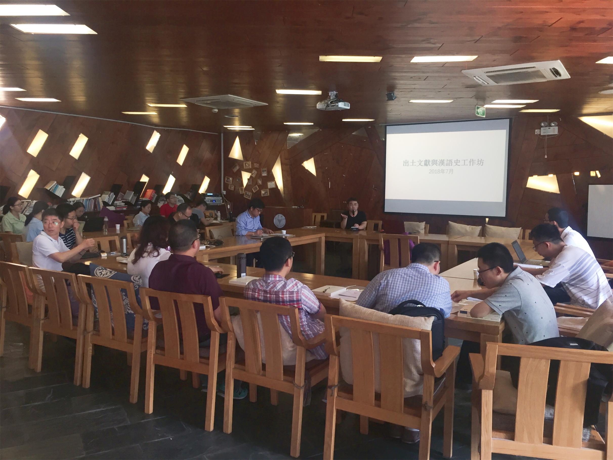 2018年7月2日,出土文献与汉语史研究工作坊在浙江大学西溪校区人文学院咖啡馆进行,此次工作坊由浙大汉语史研究中心的史文磊老师和佛罗里达大学艺术史系的来国龙老师主持,来自厦门大学的叶玉英老师、中山大学的范常喜老师、吉林大学的李春桃老师、南京大学的魏宜辉老师、安徽大学的夏大兆老师、南开大学的蒋玉斌老师、温州大学的叶晓锋老师、浙江财经大学的杨建忠老师、边田钢老师出席。