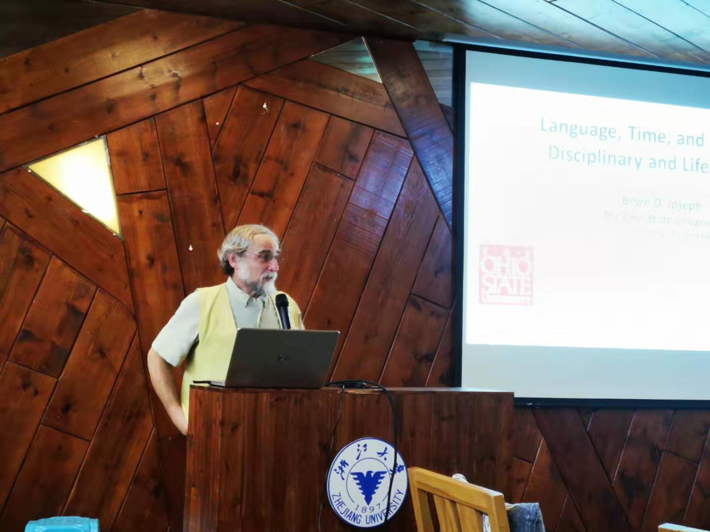 2019年10月31日下午14:30-16:30,美国俄亥俄州立大学杰出教授、2019年美国语言学会会长、著名语言学家Brain Joseph做客浙江大学中文系,在西溪校区人文学院咖啡吧为我校师生作了题为“Language, Time, and Change—Disciplinary and Life Lesson”的讲座,并与到场的与谈学者进行了热烈的讨论。到场的与谈学者有浙大中文系彭利贞教授、李旭平副教授、罗天华副教授、史文磊副教授,浙大外国语学院乐明副教授、百人计划研究员江豪文博士、刘莹博士后。全校师生共40余人参加。