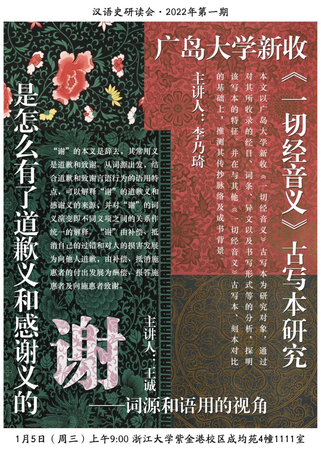 汉语史研读会2022年第一期