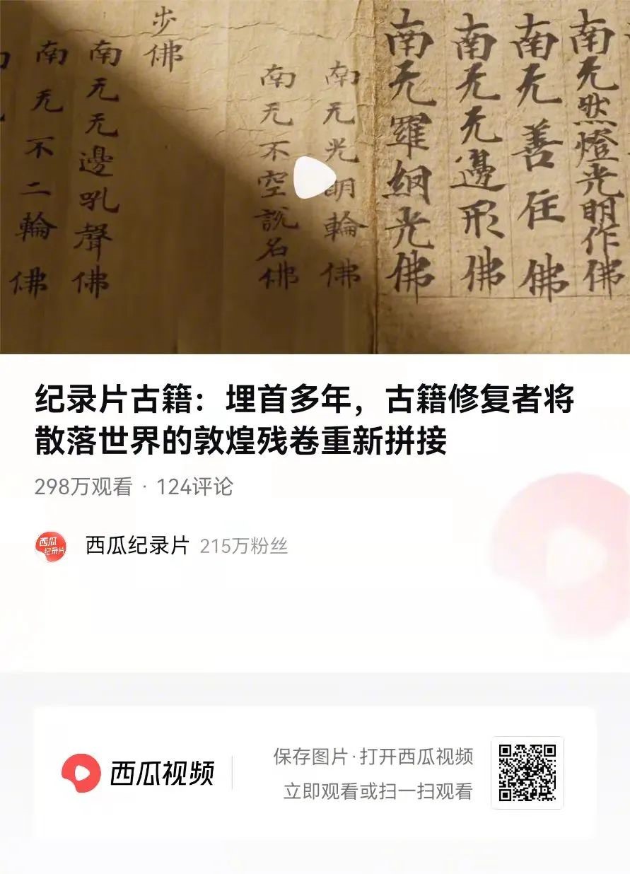 聚焦中心张涌泉教授团队缀合敦煌残卷工作的纪录片《拼接撕裂的文明》已于近日上线西瓜视频、今日头条等平台。本片围绕张涌泉教授及其团队十余年来的敦煌残卷缀合研究,展现连缀工作